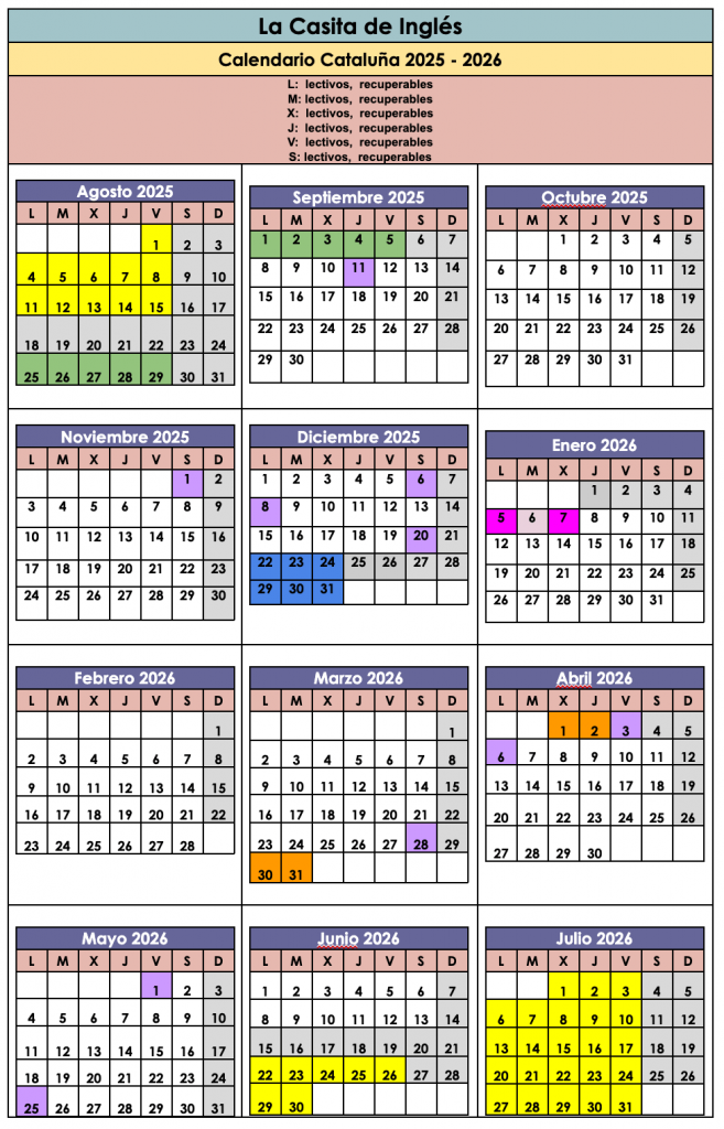 En el mes de septiembre se cobrará el 50% de la mensualidad, terminando el curso el sábado de la segunda semana de septiembre.