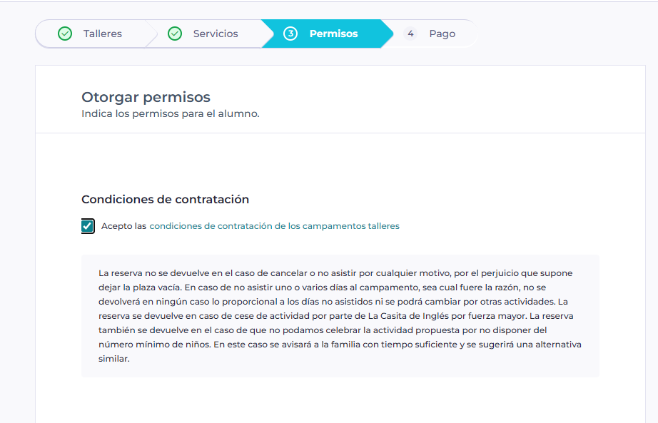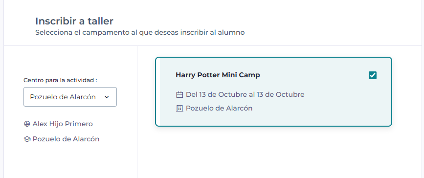 - El siguiente paso será elegir el campamento o taller dentro del centro que te interesa: