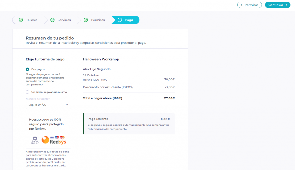 - Después de que hayas seleccionado las semanas que os interesan debes seleccionar “CONTINUAR”.