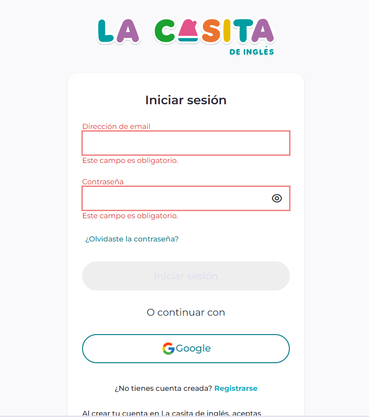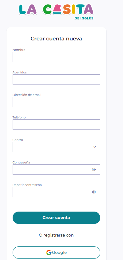 - Para registrarte por primera vez pincha en “REGISTRARSE” debajo del logotipo de Google.