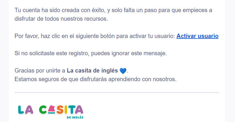 - Para confirmar tu cuenta, te llegará un email donde tienes que hacer click en Activar Usuario