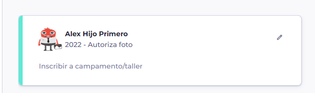 - Para apuntarse a un campamento debes hacer click en “INSCRIBIR A CAMPAMENTO/TALLER” sobre la caja con el nombre de tu hijo.