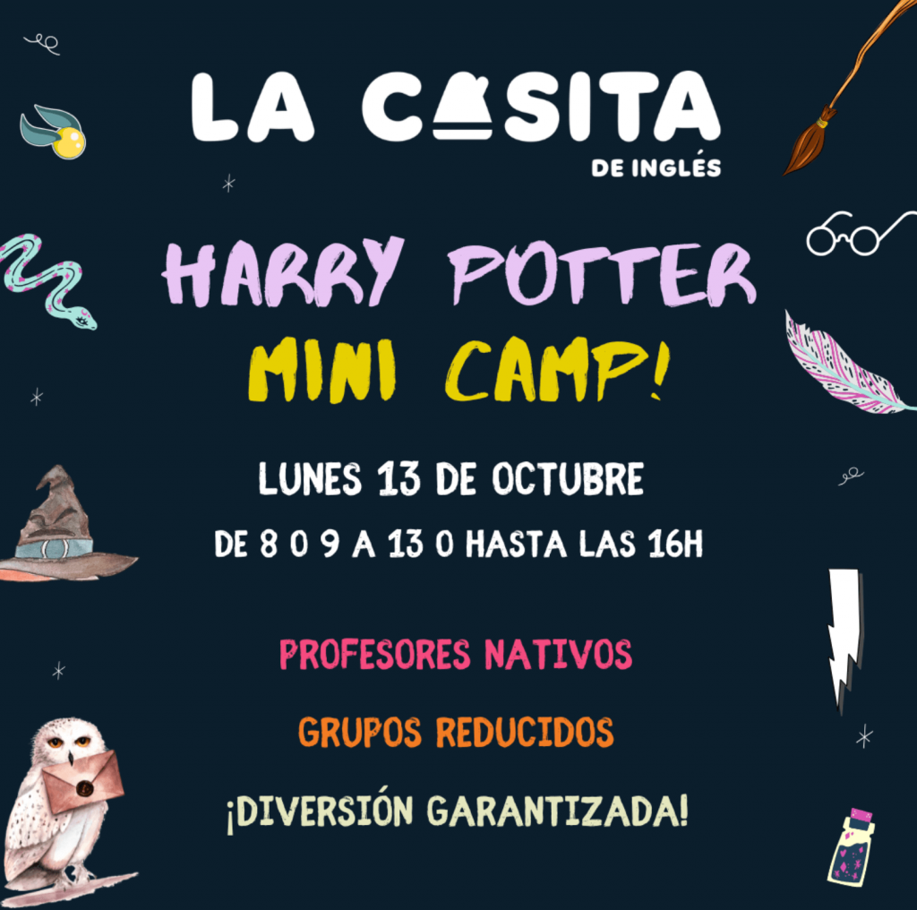 Empieza fuerte con el Harry Potter Mini Camp de La Casita de Inglés (lunes 13 de octubre). Un día sin cole perfecto para que tus hijos vivan su propia aventura mágica: varitas, experimentos, juegos y actividades creativas 100 % en inglés, en nuestras Casitas de Chamberí, Retiro, Pozuelo y Sanchinarro.